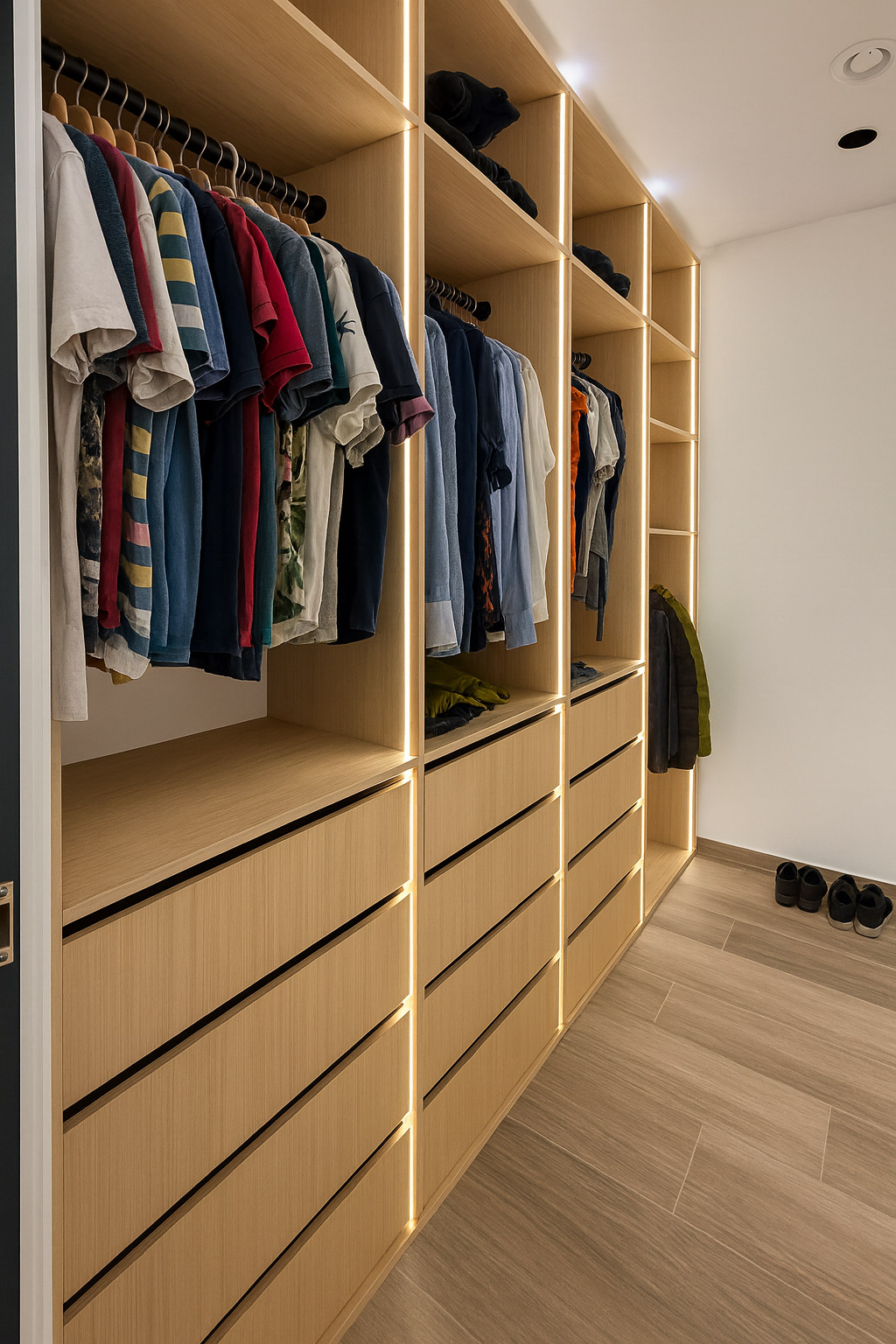 Dulapuri elegante care îmbină spațiul inteligent de depozitare cu un aspect modern. Prevăzute cu sertare, rafturi și spațiu pentru umerașe, pentru o organizare eficientă și rafinată.